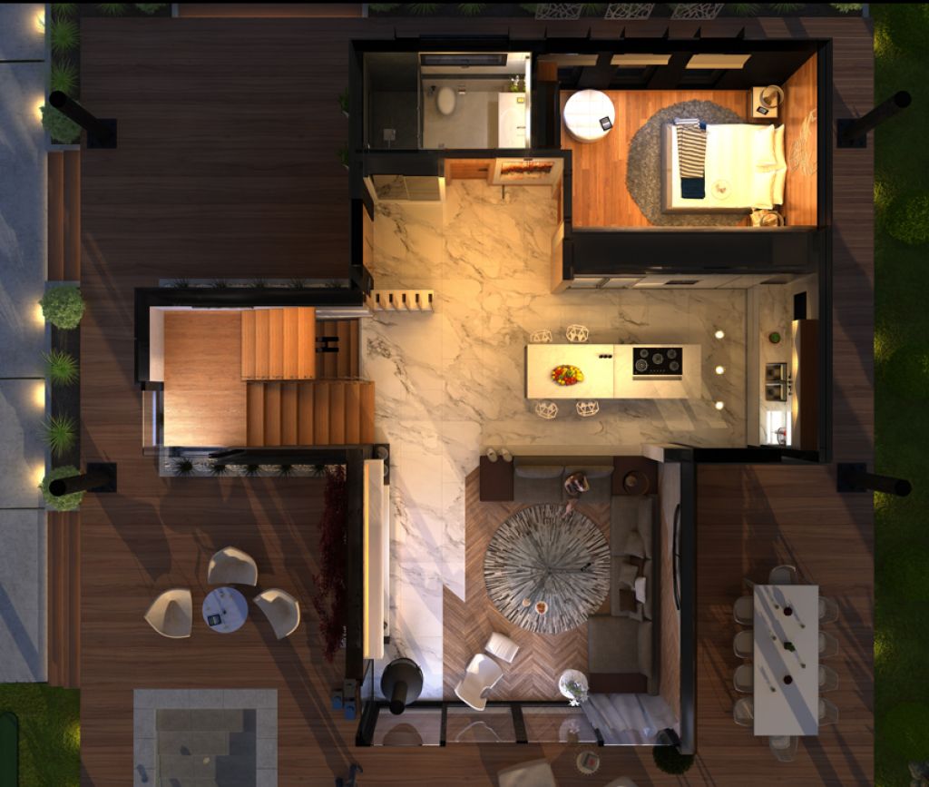 Bodrum Katı 121,12 m², giriş katı 105,76 m², teras alanı 148,82 m2, üst katı 119,18 m² ve galeri boşluğu 31,36 m² olan 1. Tip villaların toplam brüt kullanım alanı ise 494,88 m²