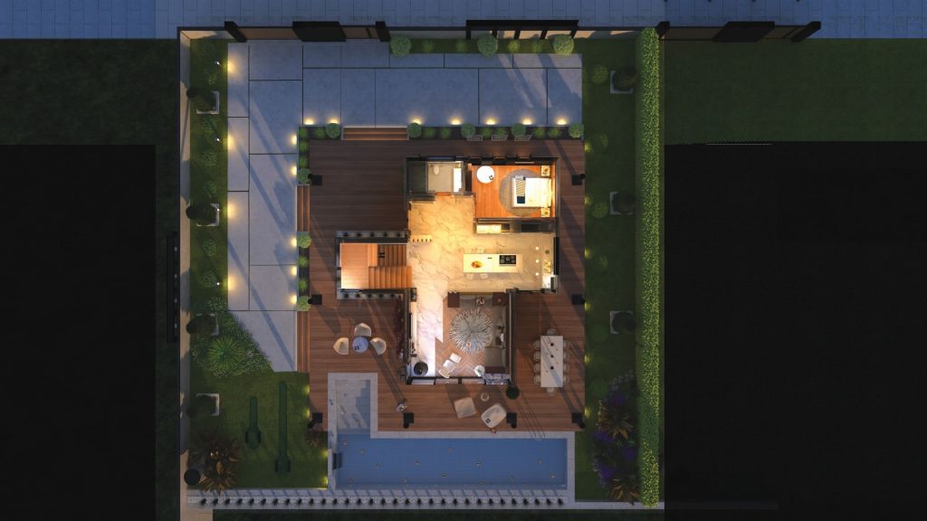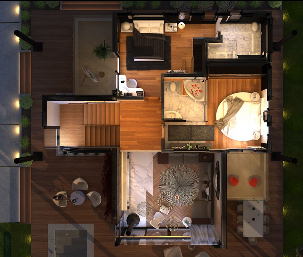 Sol tarafta yer alan 1. Tip 3 villadan her birinin sahip olduğu alan büyüklüğü 712 m².